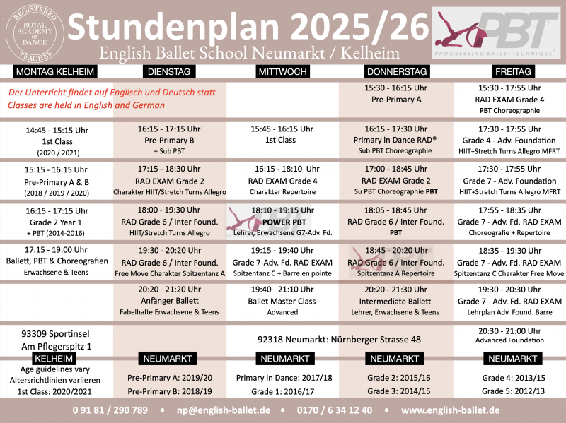 Timetable Sept 2025/2026 Ballettkalender 2026
