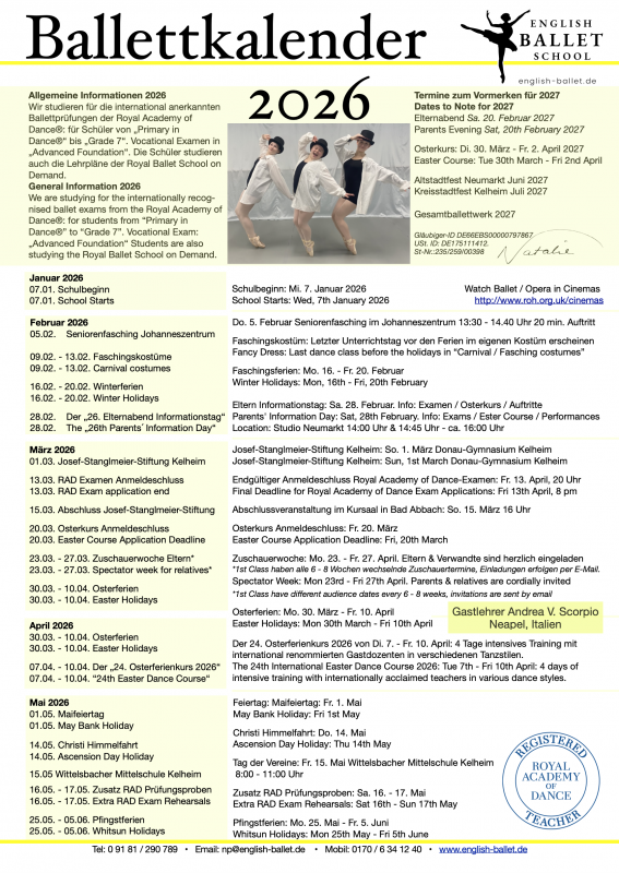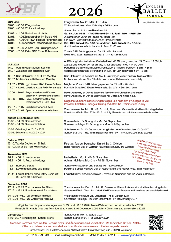 Timetable 2025 - 2026 Ballettkalender 2026